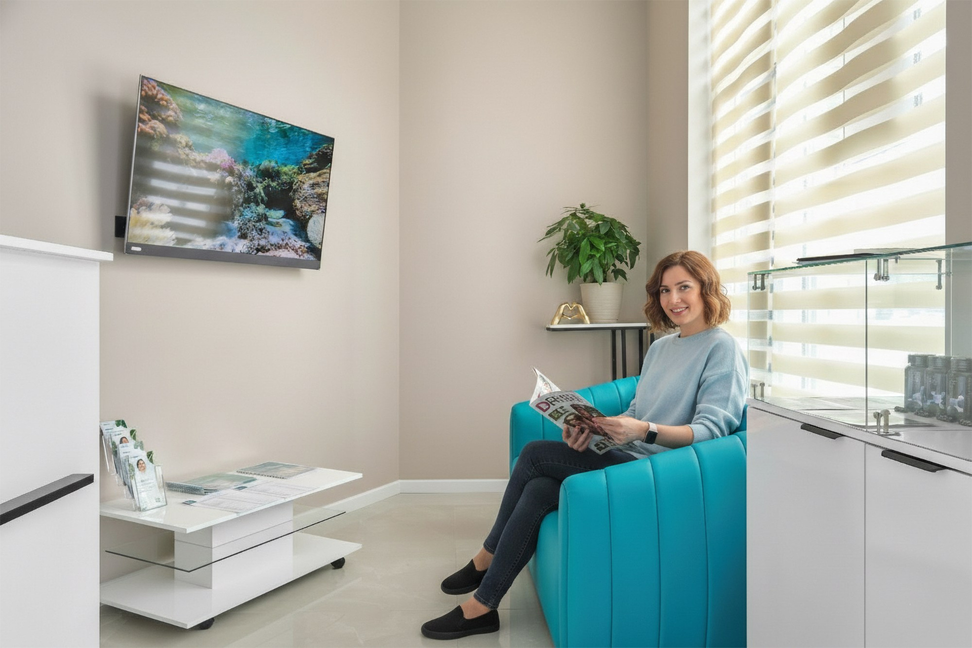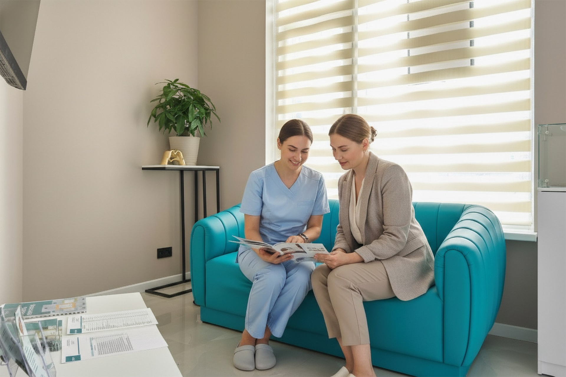 - Идеальная атмосфера. Мы можем задать нужное настроение: заботливый врач, спокойный пациент на ресепшене. Это вдыхает жизнь в статичный интерьер, позволяя зрителю «примерить» ситуацию на себя.